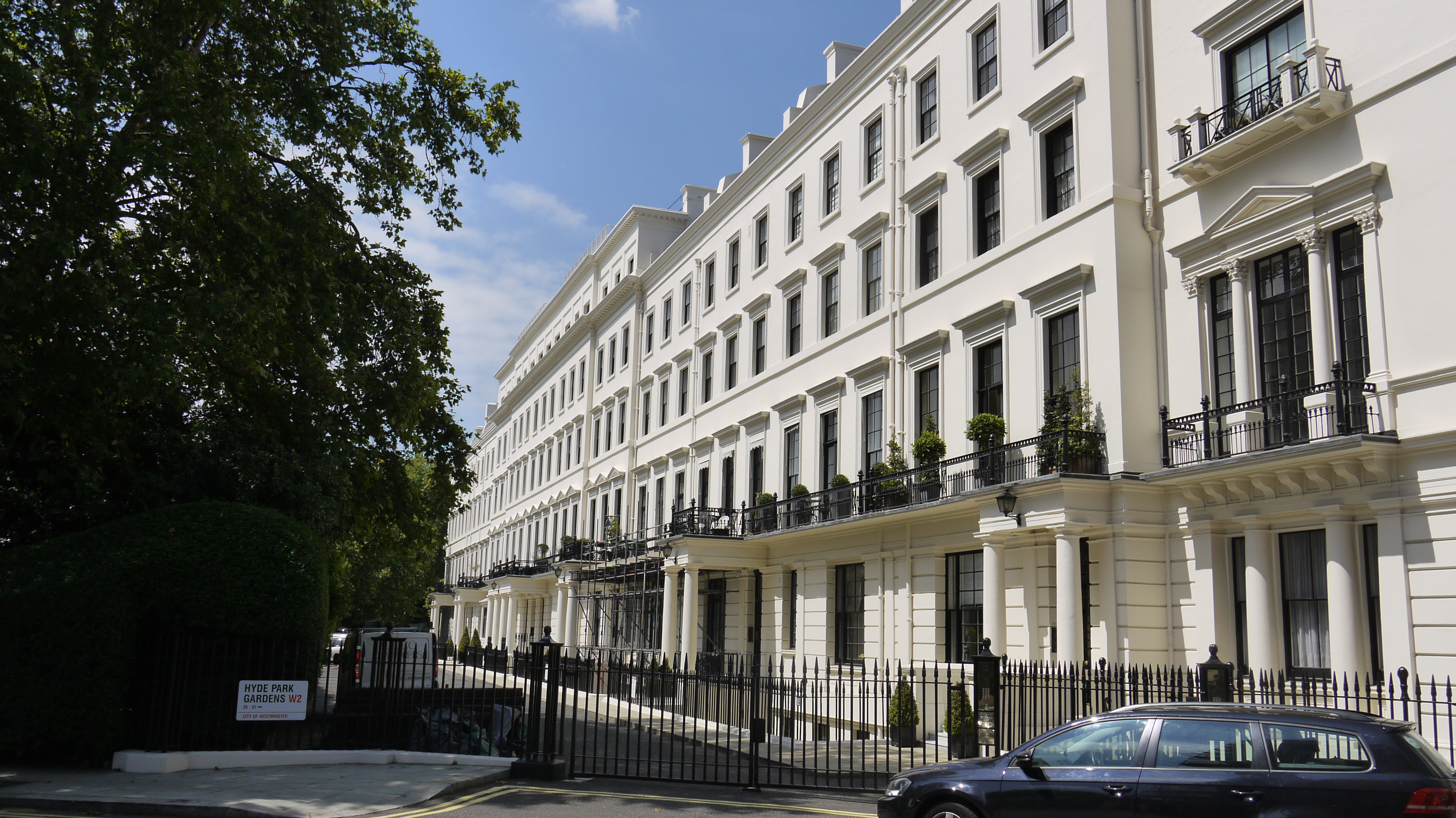 EAW046369 ENGLAND (1952). Hyde Park Gardens and Sussex Square, Hyde Park, 1952. This image was marked by Aerofilms Ltd for photo editing.