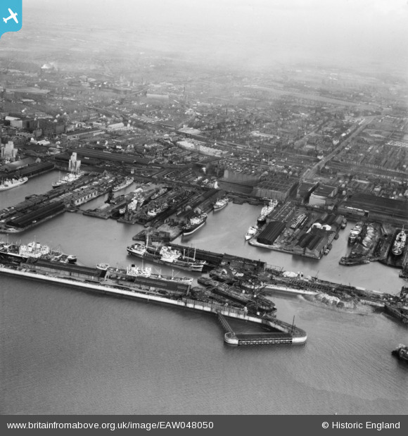 EAW048050 ENGLAND (1952). Langton Dock and Brocklebank Dock, Bootle, from the south-west, 1952