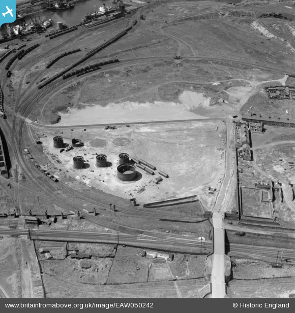 Pennawd | [EAW050242] An oil depot under construction near Prince of Wales Dock, Workington, 1953 |