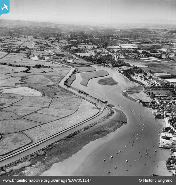 Pennawd | [EAW051147] The River Exe alongside the Exeter Canal, Exminster, from the south-east, 1953 |