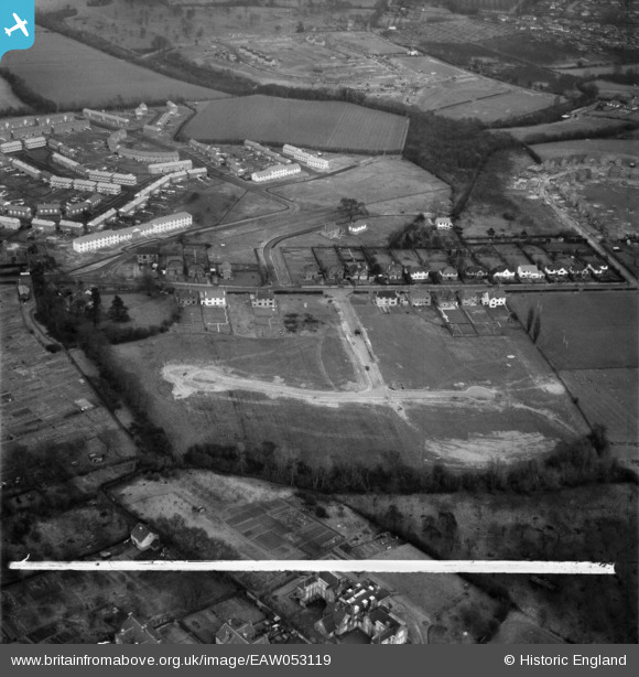 EAW053119 ENGLAND (1954). The Ridgeway and construction of Exeter Close, Cage Green, 1954. This image was marked by Aerofilms Ltd for photo editing.