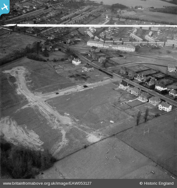 | Pennawd | [EAW053127] Construction of Exeter Close, Cage Green, 1954. This image was marked by Aerofilms Ltd for photo editing. |