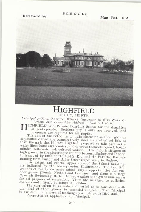 Definitely Highfield girls school, formerly Carpenders situated in Oxhey Lane, Carpenders Park. Demolished 1960. Mansion is just out of view to the right with the old stables, later used as mainhall and ballroom linked by that covered passageway. The house lower just to the right of the angled wall - lower leftwas the gardeners cottage - I knew the people that lived there during the war. Entrance lodge is opposite the farm on the other side of the road. There was another entrance lodge further along Oxhey lane towards Harrow. It was in use at this time as a sick bay for the school |