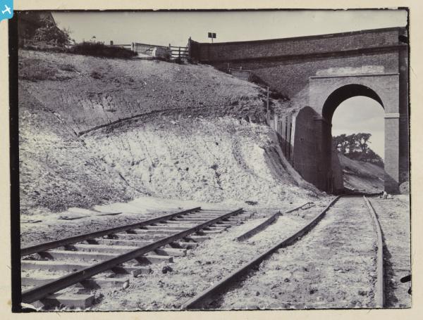 The principal feature in this image is the London Midland & Scottish Railway line, which was constructed in 1837 as the main line between the capital and Birmingham. Before the Big Four Grouping of January 1st, 1923, this was the London & North Western Railway. It was not permitted to run through Cassiobury, along the route of the Grand Union Canal, by the Earl of Essex, in early Victorian Britain, so a wide sweeping curve was adopted around the eastern flanks of the expanding town of Watford, from Bushey Arches to Watford Station on St.Albans Road (later Watford Junction). The gravel and chalk extracted from the deep cutting observed on the photograph was used as an embankment across the Colne valley to the north-east. Sherwoods Wood occupies the left foreground. |