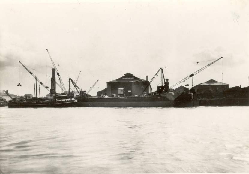 This is Allsop's Wharfe where the Wandle meets the Thames. I have contemporary photos showing the name "Allsop's Wharfe" on the large warehouse behind the 3 barges. James Allsop was my grandfather. |