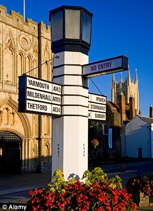 |   This photo was taken before the erection of the signpost nicknamed the ‘Pillar of Salt’ which stands on Angel Hill, roughly in the bottom L-hand corner of this picture. The Grade II listed road sign [pictured] was designed by Basil Oliver, architect to St Edmundsbury Borough Council, and erected in 1935. It is considered to be the first internally illuminated traffic sign in the UK. It was granted special approval because it did not conform to regulations. |   MorrisDancer | Thursday 19th of December 2013 06:17:00 PM |
