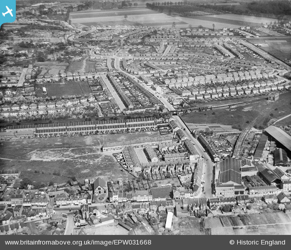 EPW031668 ENGLAND (1930). Hounslow East Railway Station and environs, Hounslow, from the south-east, 1930