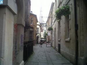A 2007 view looking west towards the towers of the ruined St Peter's and St Mary-le-Port churches, showing Castle Park, which has replaced the streets here following German bombing in World War II: www.flickr.com/photos/brizzlebornandbred/2056350827/in/photostream/ |