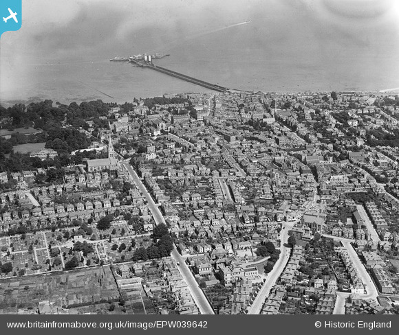 Pennawd | [EPW039642] West Street, the town centre and the pier, Ryde, from the south-west, 1932 |