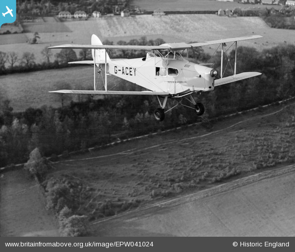 EPW041024 ENGLAND (1933). De Havilland DH.83 Fox Moth "The Youth of Newfoundland" (G-ACEY) in flight, Warlingham, 1933