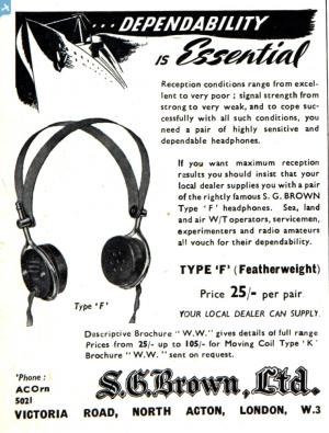1910/1911 Sydney George Brown formed a new company, S. G. Brown Ltd, to manufacture telephone equipment. With his wife's assistance, he designed a telephone relay, an improved receiver, and an effective loudspeaker (the Browns being first to use this name for the device).