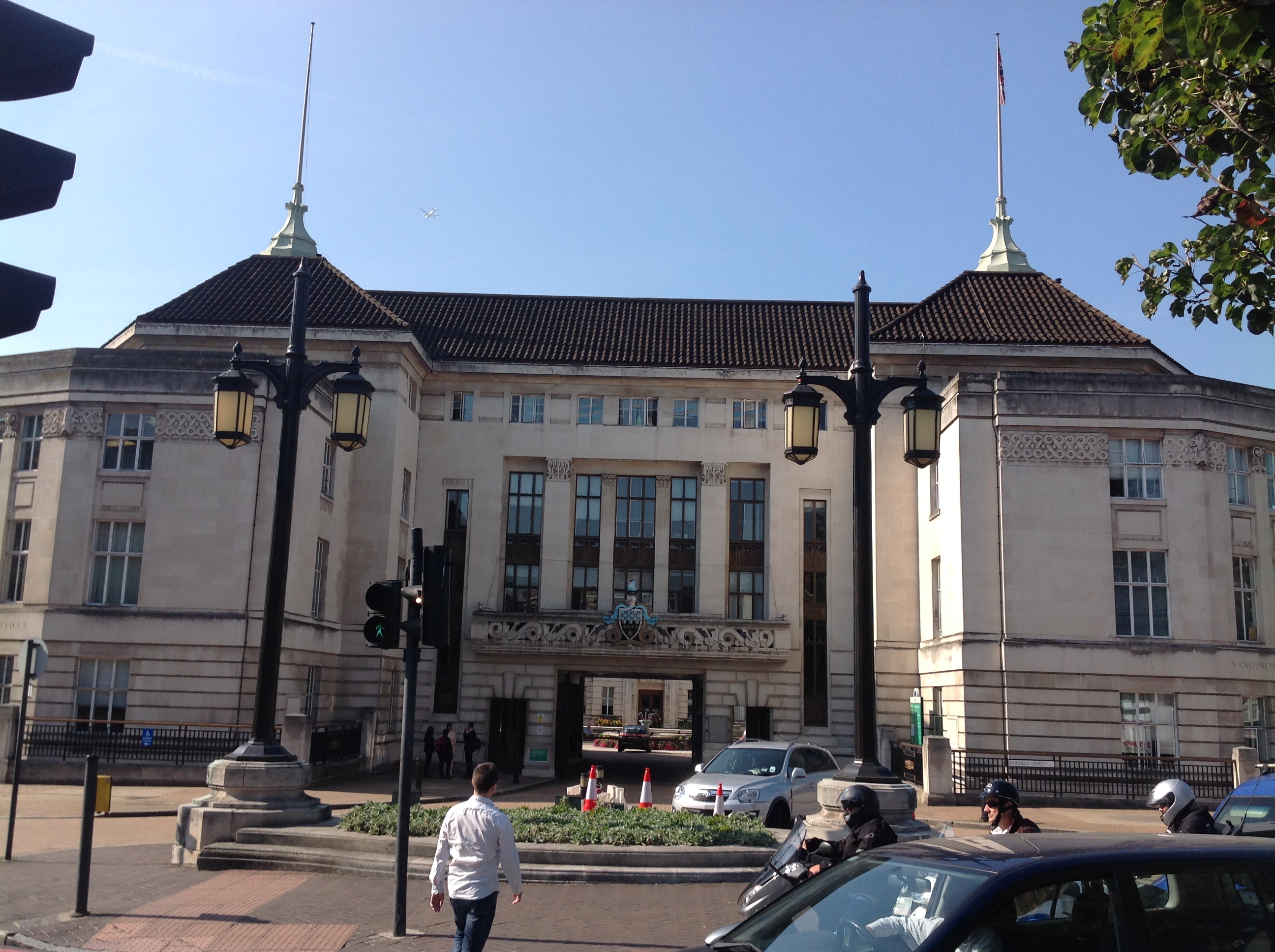 Pennawd | [EPW053656] The Town Hall and environs, Wandsworth, 1937. This image has been affected by flare. |