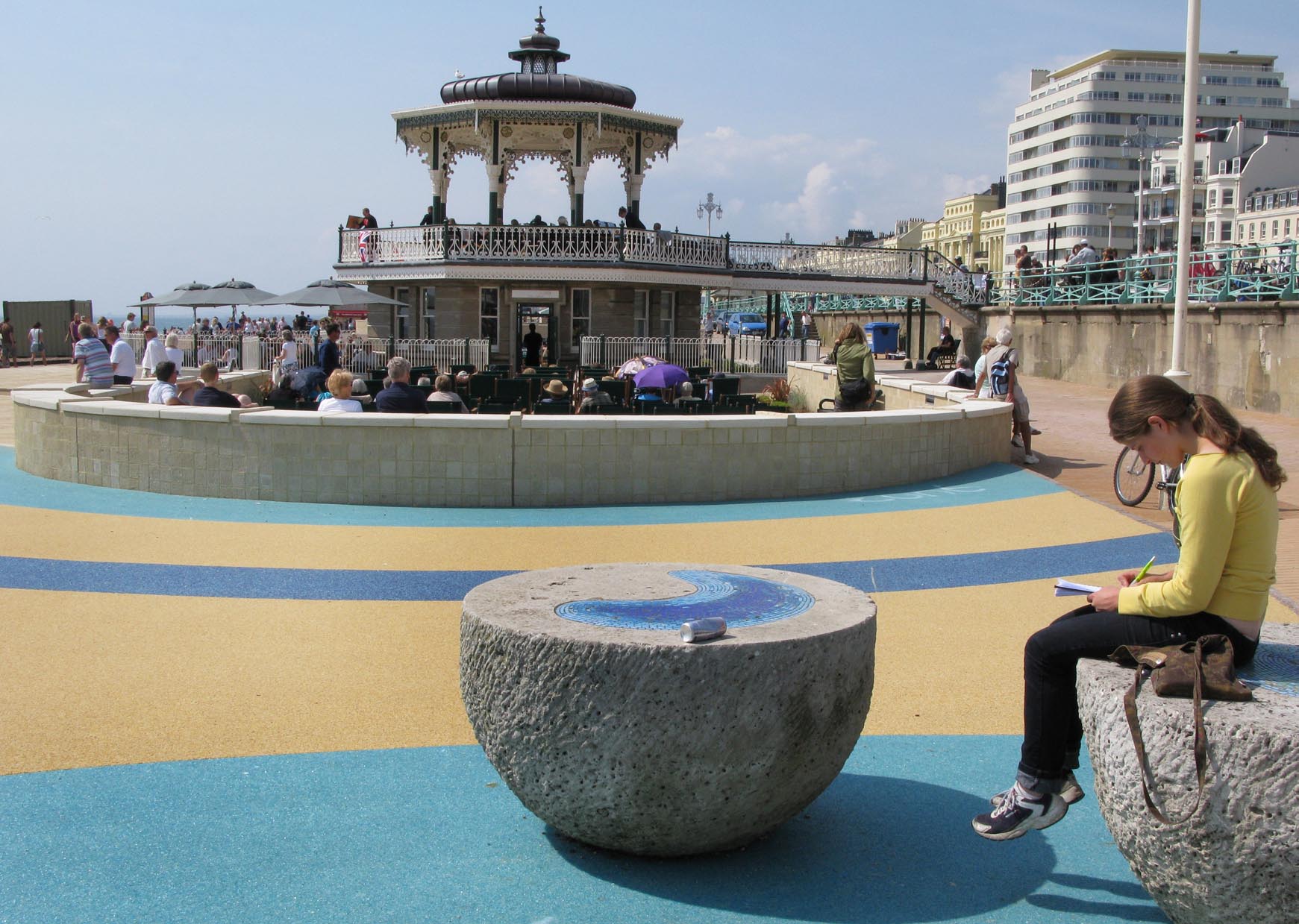 Pennawd | [EPW054141] King's Road and the Esplanade Band Stand and Putting Green, Brighton, 1937 |