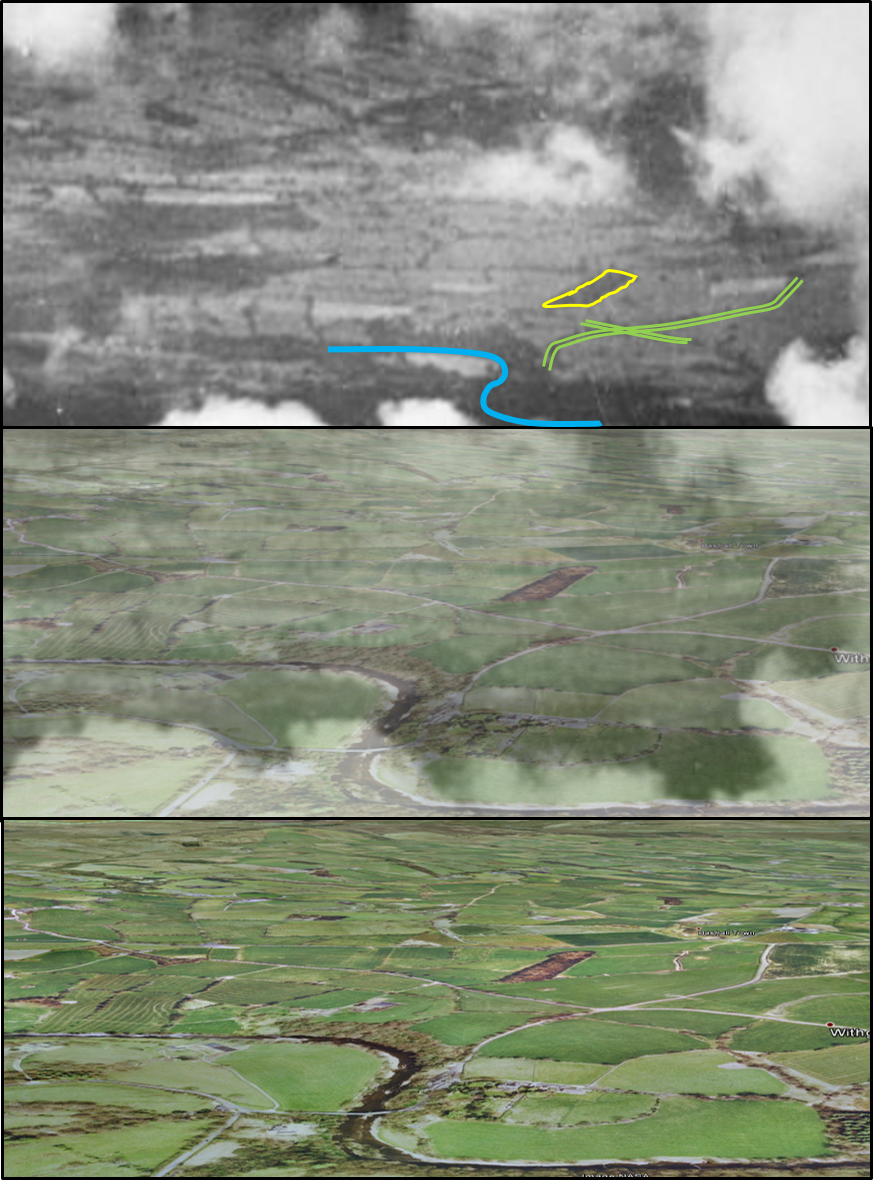 From the limited ground shown i think i've identified Moss Wood and a sweep of the river Hodder near Withgill, west of Clitheroe. I hope the attached pic illustrates this better - although i can't quite get a perfect match with Google Earth. |