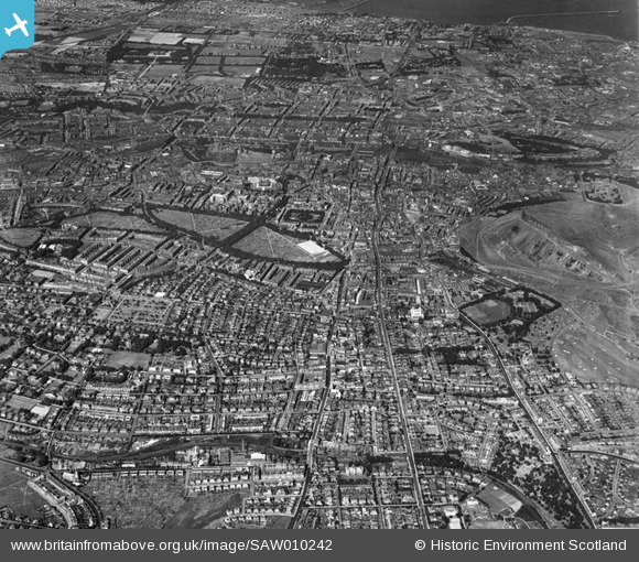 SAW010242 SCOTLAND (1947). Edinburgh, general view, showing The Meadows and Holyrood Park. An oblique aerial photograph taken facing north.