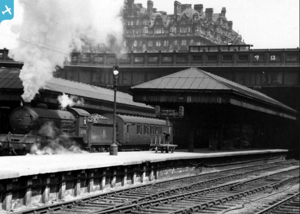 SAW014866 SCOTLAND (1948). Edinburgh, general view, showing Princes Street and Waverley Station. An oblique aerial photograph taken facing east. This image has been produced from a print.