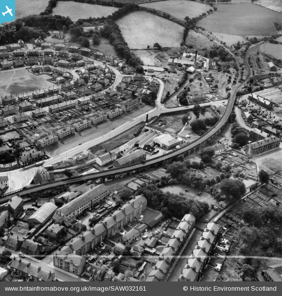 SAW032161 SCOTLAND (1950). Barrhead, general view, showing West Arthurlie Bleach Works, Kelburn Street and Levern Crescent. An oblique aerial photograph taken facing south. This image has been produced from a crop marked negative.