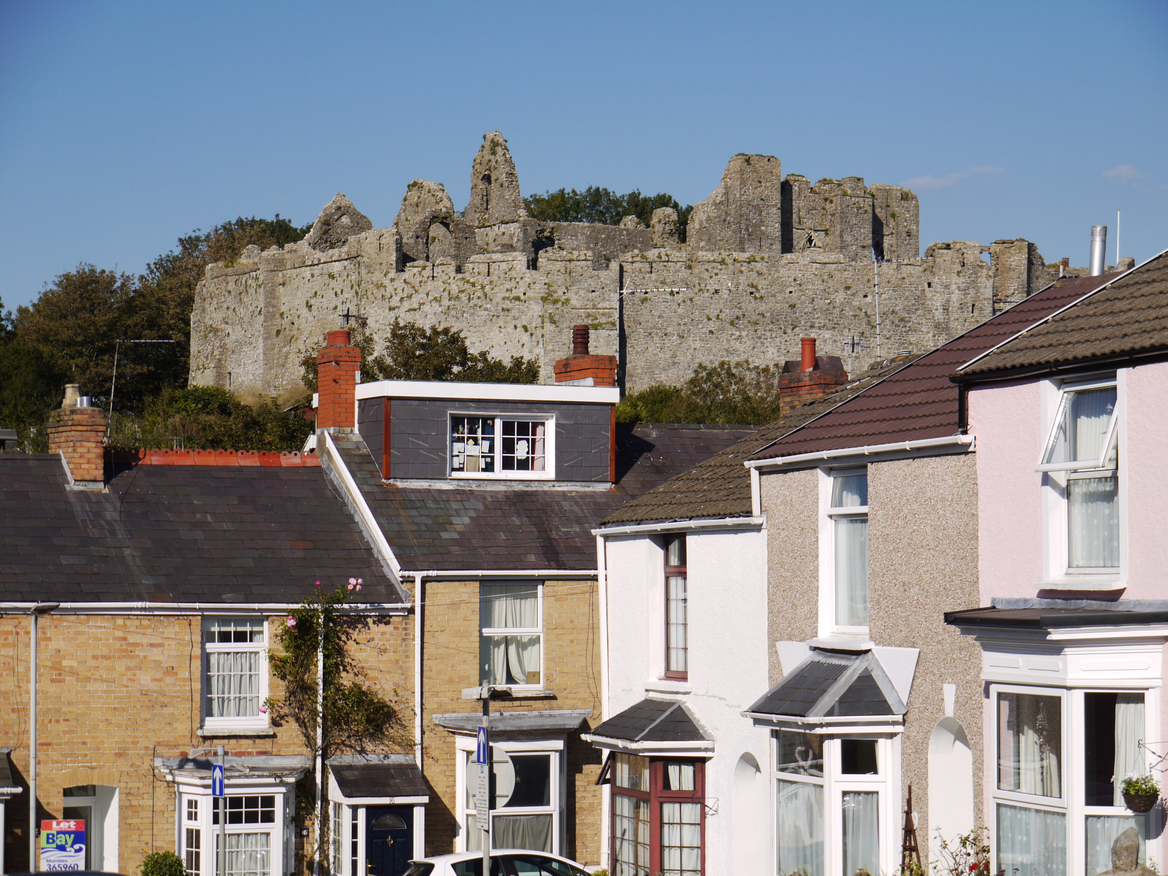 | Pennawd | [WAW007664] View of Oystermouth castle showing allotment gardens |