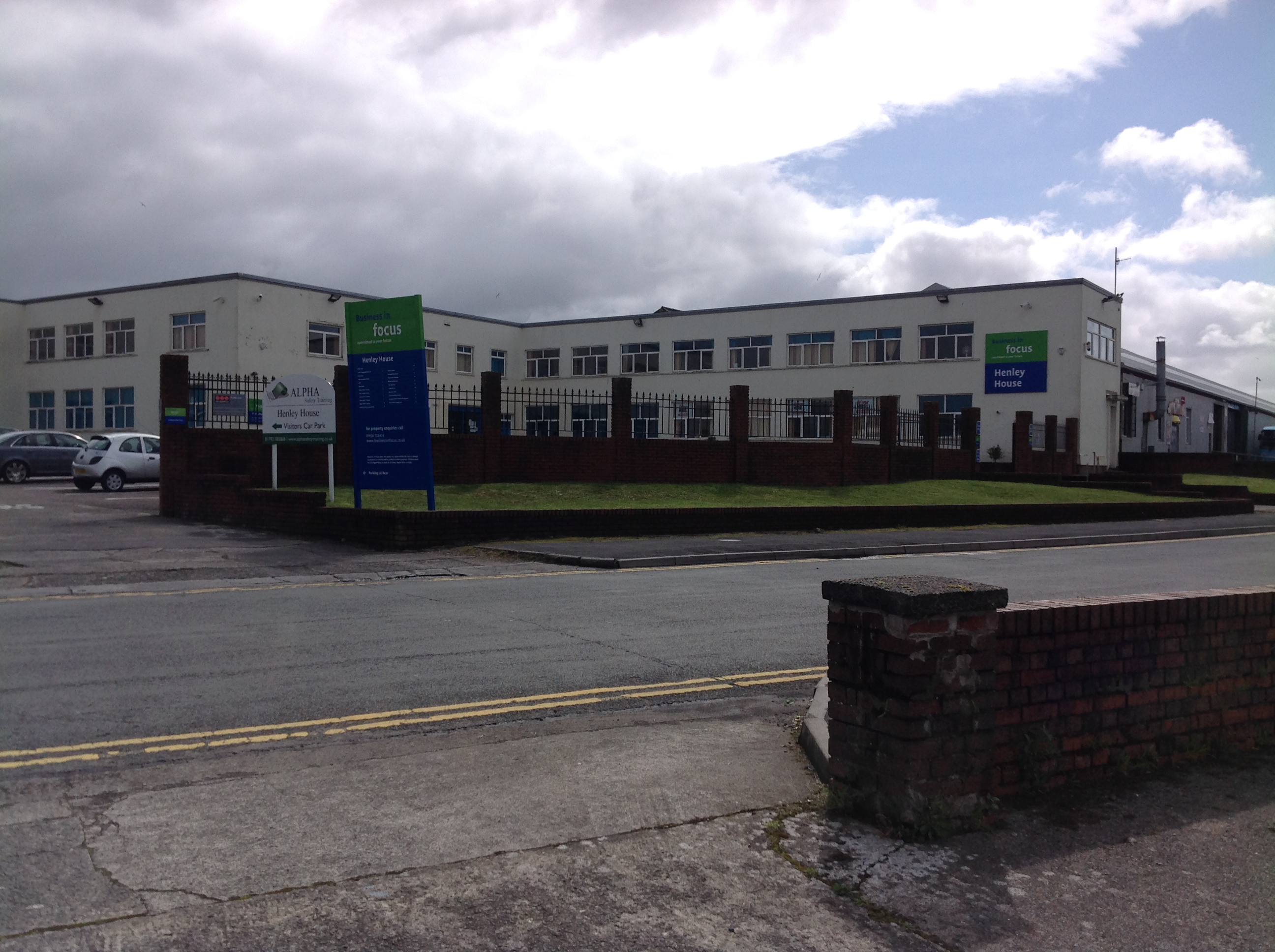 Pennawd | [WAW027849] View of Mettoy factory, Fforestfach showing building 'W' |