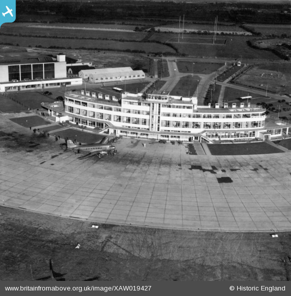 | Pennawd | [XAW019427] Dublin Airport, Ridgewood, Dublin, Ireland, 1948. Oblique aerial photograph taken facing East. |