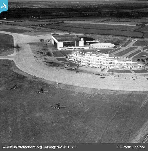 | Pennawd | [XAW019429] Dublin Airport, Ridgewood, Dublin, Ireland, 1948. Oblique aerial photograph taken facing East. |
