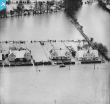 [EAW003712] Houses at South View on Etonwick Road in floodwater, Eton, 1947