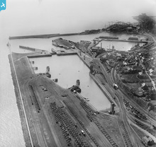 [SPW027189] Burntisland, general view, showing Burntisland Harbour and Docks. An oblique aerial photograph taken facing west.