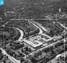 [EAW005448] The Hilldrop Estate under construction, Tufnell Park, 1947. This image was marked by Aerofilms Ltd for photo editing.