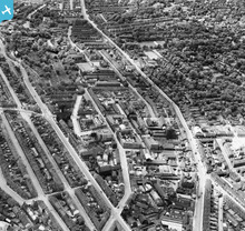 [EAW009687] Textile mills between Leeds Road and St Andrew's Road, Huddersfield, 1947. This image was marked by Aerofilms Ltd for photo editing.