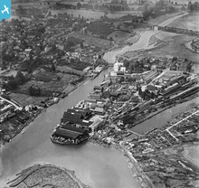 [EPW054681] The River Chelmer and timber yard by Maldon East Station, Maldon, 1937