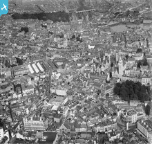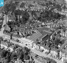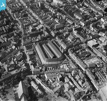 [WPW029747] View of Market Hall, Swansea, oblique aerial view. 5"x4" black and white glass plate negative.