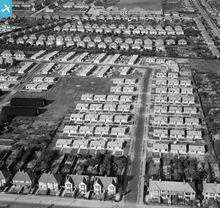 [EAW002930] Prefabricated housing surrounding Lichfield Road, Cambridge, 1946