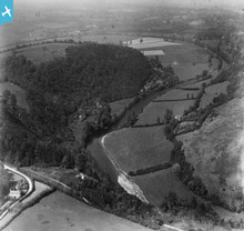 [WPW006056] View of landscape near Monmouth, oblique aerial view. 5"x4" black and white glass plate negative.
