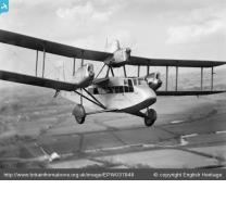 The Airspeed AS.4 Ferry was a three-engined 10-seat biplane airliner. A pleasure flying airliner built for Sir Alan Cobham, the Ferry was an unusual configuration biplane with a third engine mounted in the upper wing, designed to give the pilot a better view. The first aircraft built, G-ABSI Youth of Britain II, first flew on 10 April 1932 from Sherburn-in-Elmet." (source: http://yorkgrandtour.co.uk/exhibit/03/st.-helen's-square) |