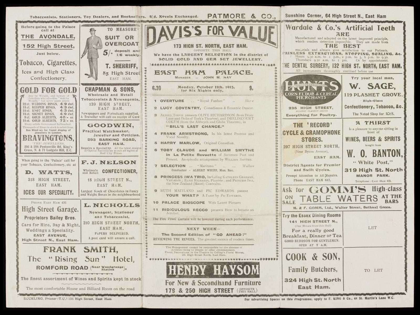 According to the theatretrust.org.uk website East Ham Palace was demolished in 1958 and replaced by a featureless brick box which appears to have lasted longer on the site than the Palace did. |
