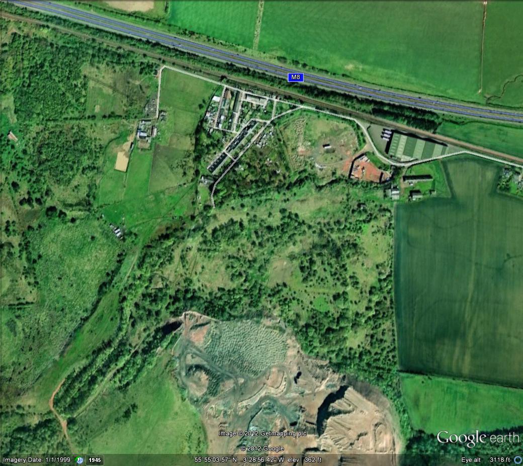 Stewartfield No.1 mine exploited Broxburn shale reserves lying to the south west of Broxburn Oil Works by means of a long roadway through earlier shale workings. Hutches of shale would emerge from the adit into an area of opencasting and hauled onto staging (also serving No.2 mine) before crossing the canal to Broxburn Oil Works. |