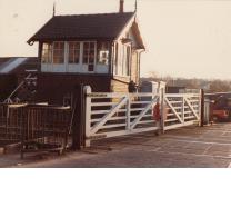 Sutton Crossing signal box with associated level crossing. Signal box looks to be a NSR Type 1 design with McKenzie and Holland wooden crossing gates.