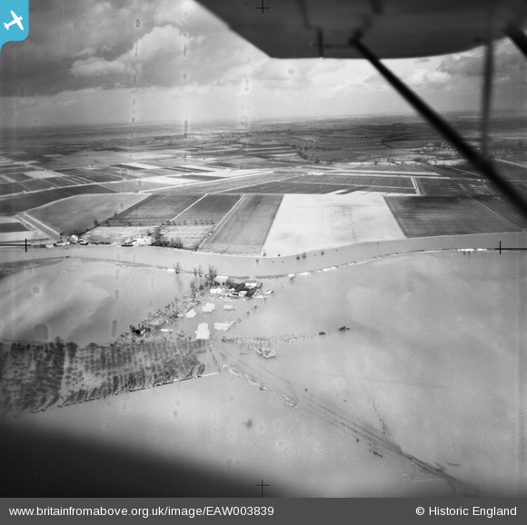 I have now had a look at EAW003837 which was taken of Flooding of the River Great Ouse at Middle Fen Bank, Ely, from the south-east, 1947. This photo was also taken in March 1947. In my view there is a high probablity that the series EAW003837 EAW003838 and EAW003839 were all taken on the same day , on the same flight and in sequence. |