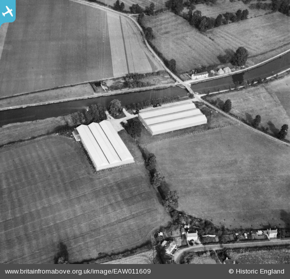 EAW011609 ENGLAND (1947). Industrial units off Church Lane beside the Gloucester and Sharpness Canal, Oatfield, 1947