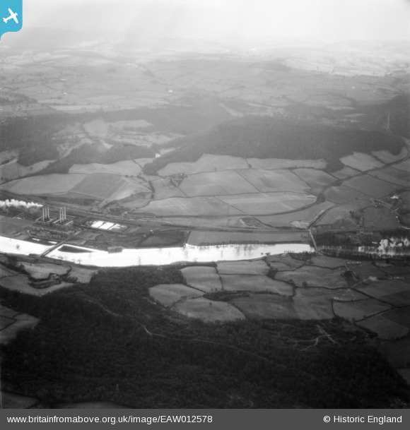 EAW012578 ENGLAND (1948). The River Severn in flood at Ironbridge A Power Station, Bildwas, 1948