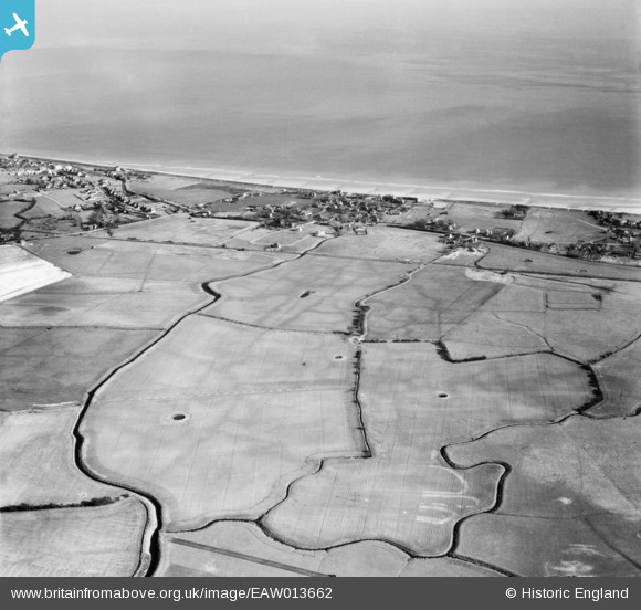 EAW013662 ENGLAND (1948). The Romney, Hythe and Dymchurch Railway passing through farmland, Dymchurch, 1948