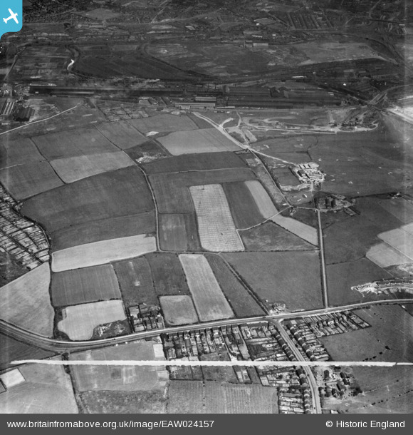 EAW024157 ENGLAND (1949). The Steel, Peech and Tozer Templeborough Steel Works and the surrounding area, Templeborough, 1949. This image was marked by Aerofilms Ltd for photo editing.