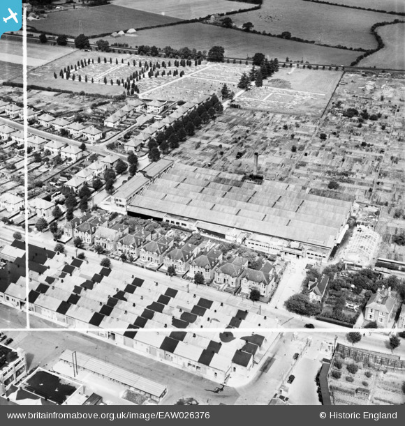 EAW026376 ENGLAND (1949). The Causton Printing Works on Brookwood Avenue and environs, Eastleigh, 1949. This image was marked by Aerofilms Ltd for photo editing.