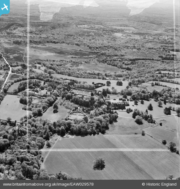 | Title | [EAW029578] Plawhatch Hall and the surrounding countryside, Forest Row, from the north-west, 1950. This image was marked by Aerofilms Ltd for photo editing. |