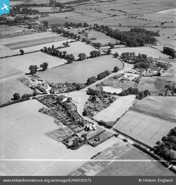 EAW030571 ENGLAND (1950). The Green and the village, West Tilbury, 1950. This image was marked by Aerofilms Ltd for photo editing.