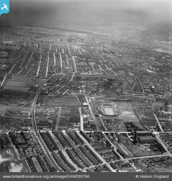 | Title | [EAW030796] The City Greyhound Stadium and the surrounding area, Lidget Green, 1950 |