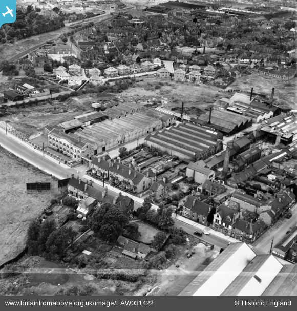 EAW031422 ENGLAND (1950). W.P. Edmunds Iron and Brass Foundry, Darlaston, 1950. This image was marked by Aerofilms Ltd for photo editing.