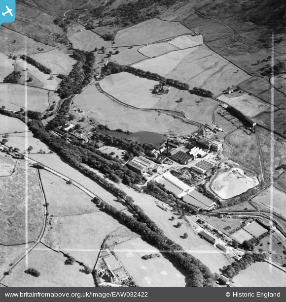 EAW032422 ENGLAND (1950). The Greenfield Paper Mill and Hey Top, Greenfield, 1950. This image was marked by Aerofilms Ltd for photo editing.
