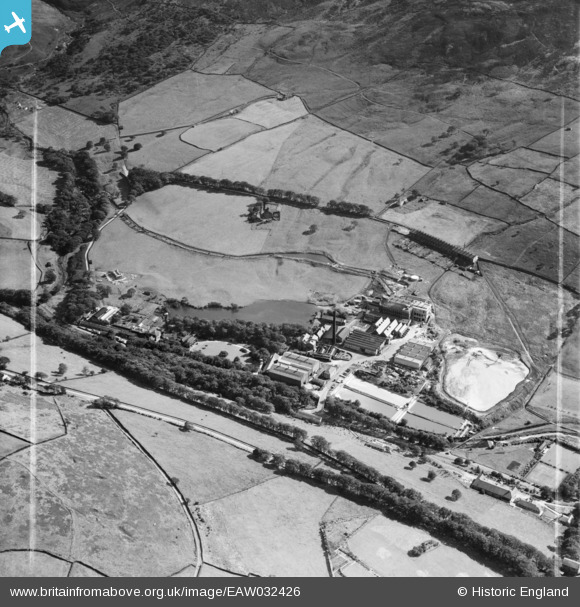 EAW032426 ENGLAND (1950). The Greenfield Paper Mill and Hey Top, Greenfield, 1950. This image was marked by Aerofilms Ltd for photo editing.