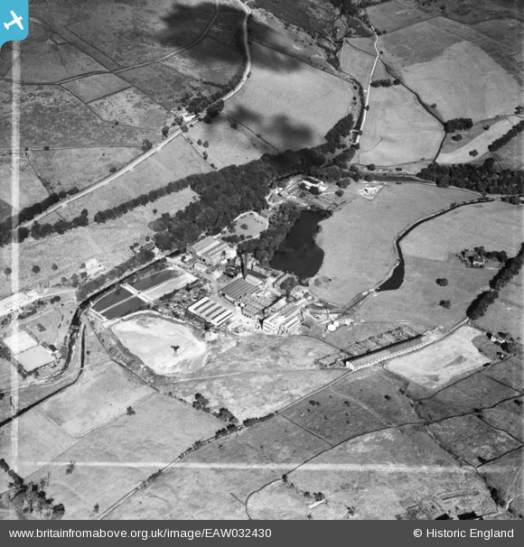 EAW032430 ENGLAND (1950). The Greenfield Paper Mill and Hey Top, Greenfield, 1950. This image was marked by Aerofilms Ltd for photo editing.